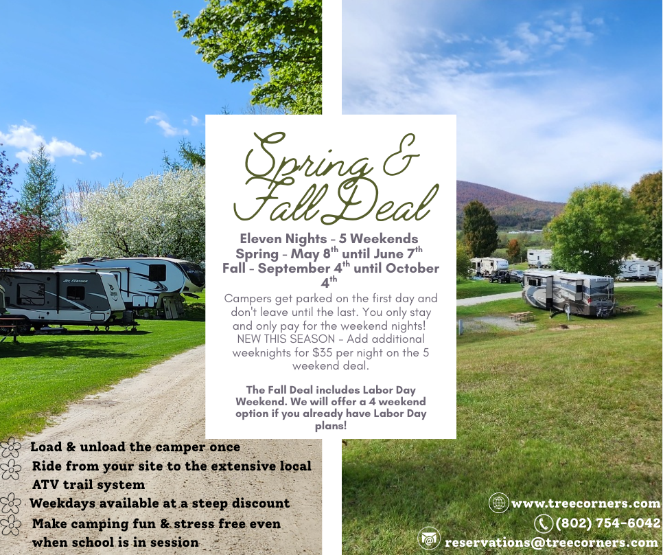 Create unforgettable family memories at Tree Corners Campground, a modern and exciting destination nestled in Vermont’s scenic Northeast Kingdom. Surrounded by beautiful gardens, mature trees, and breathtaking mountain views, Tree Corners offers the perfect blend of nature, relaxation, and family fun.
